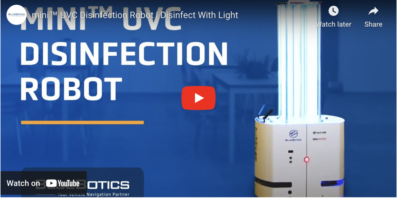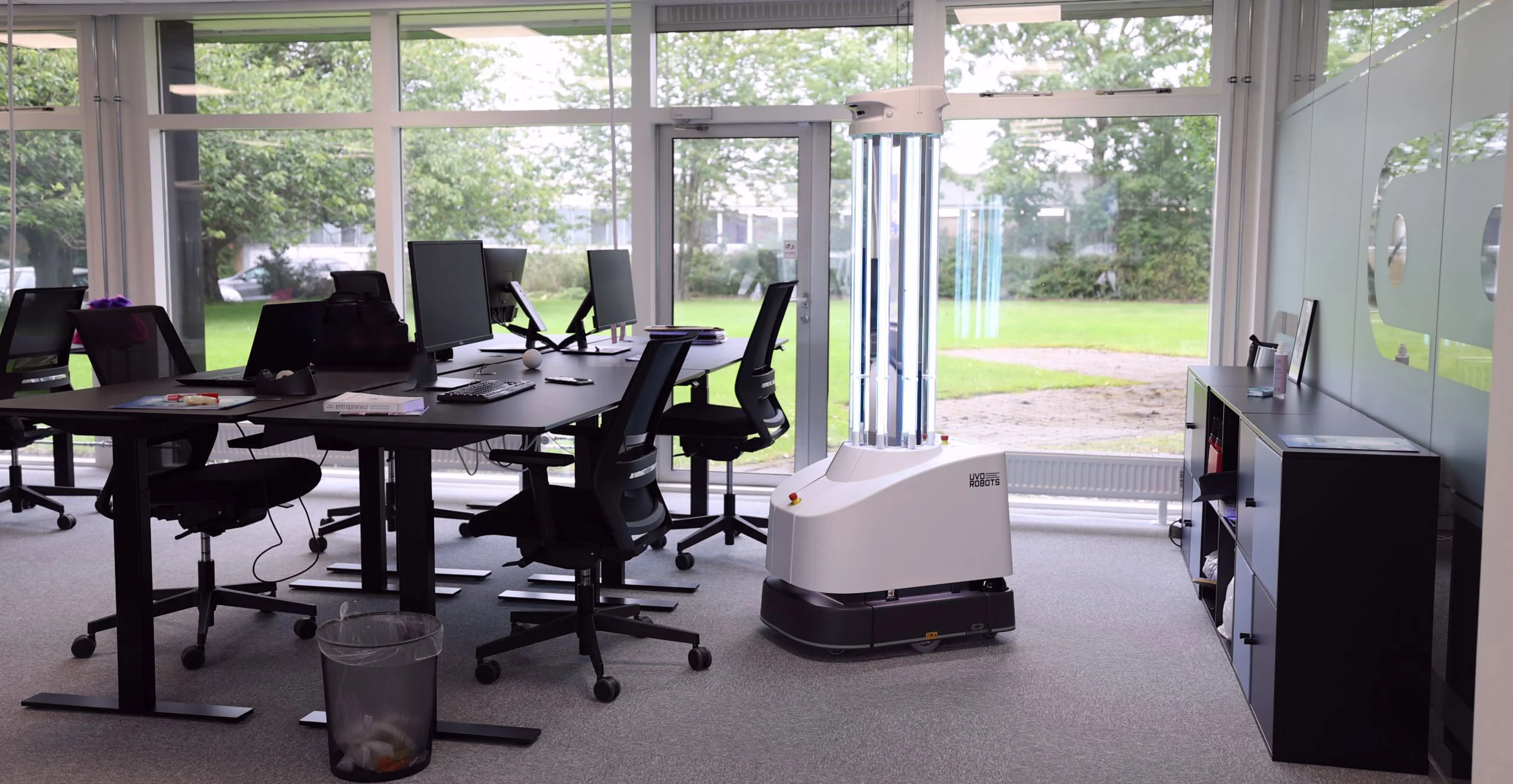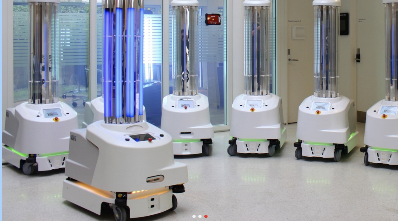 RoboCoV Cleaner is an indoor autonomous UV-C sanitizing robot with an advanced dual safety system. It is designed to reduce the spread of viruses and bacteria by sanitizing with UV-C lamps