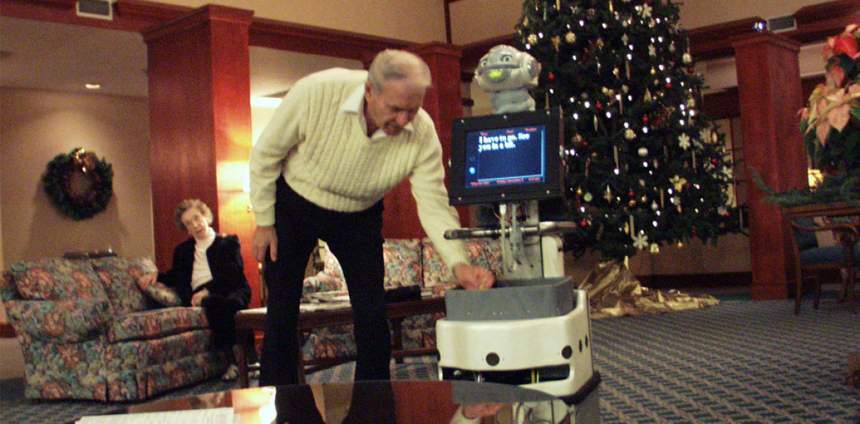 Intelligent mobile robots that semi-autonomous or autonomous services to healthcare personnel or patients