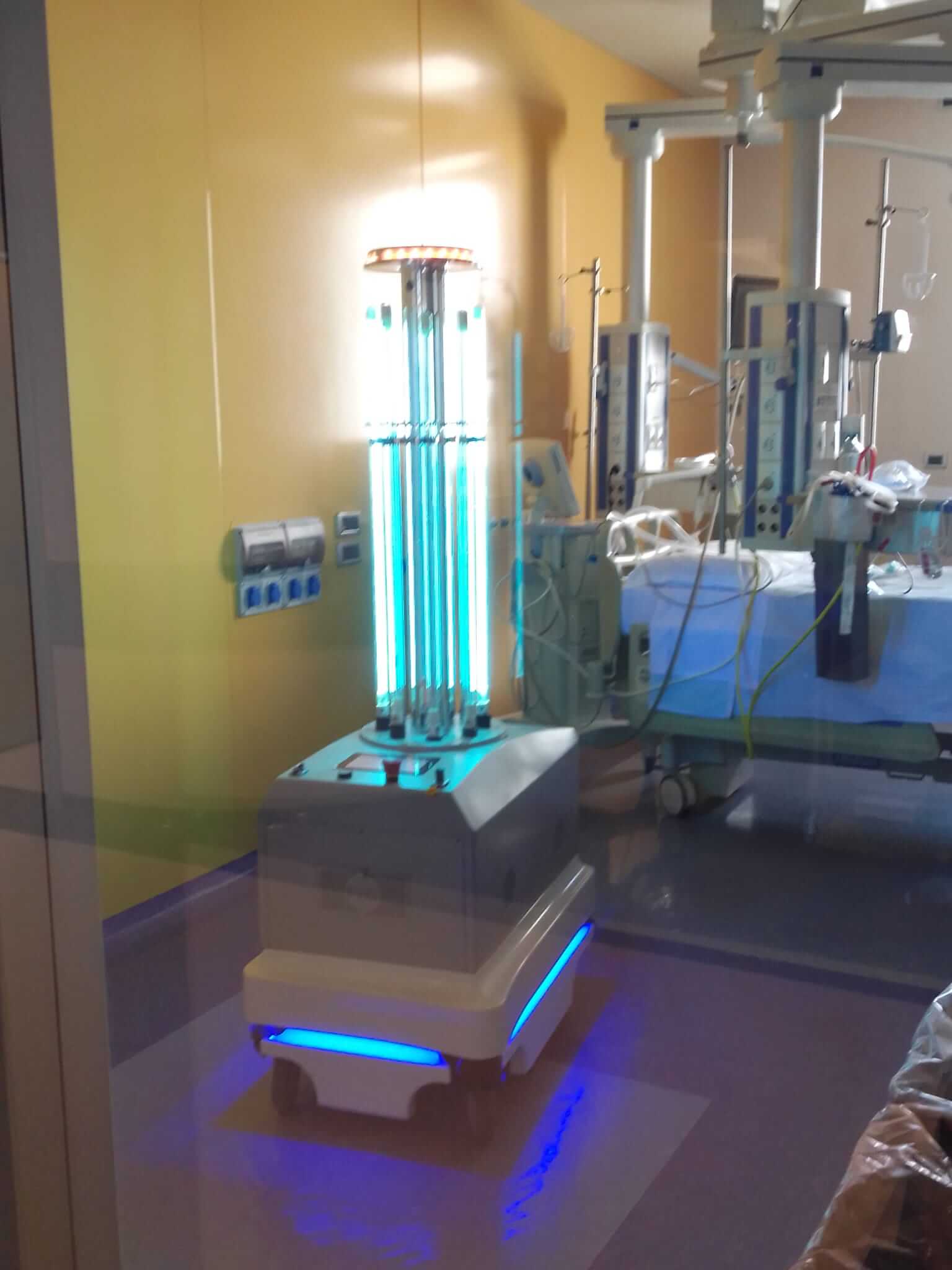 Indoor Disinfection RoboCop is an indoor disinfection robot. It is designed with the main purpose of providing disinfection of indoor spaces by automated means, especially in the fight against viruses and bacteria. The robot is equipped with advanced ultraviolet (UV) disinfection technology that effectively kills airborne and surface pathogens, including bacteria, viruses and mold