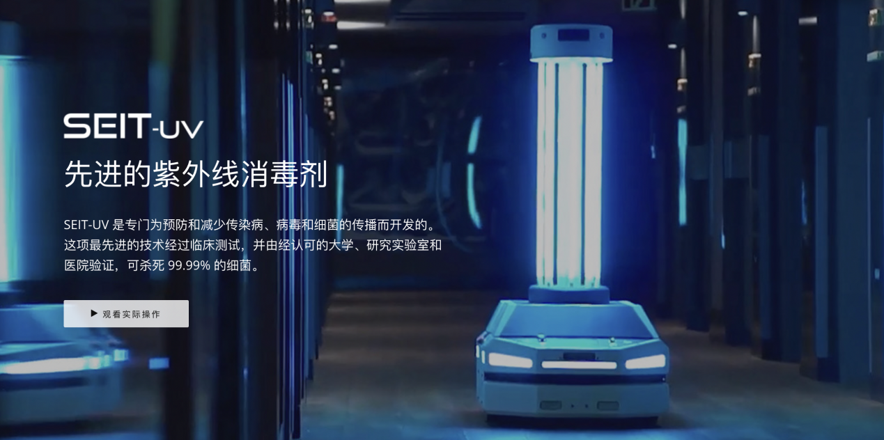 SEIT-UV is designed to prevent and minimize the spread of infectious diseases, viruses and bacteria through an automated approach. The robot utilizes cutting-edge UV-C disinfection technology and has been clinically tested by accredited universities, research labs and hospitals to prove its ability to eliminate 99.99% of germs