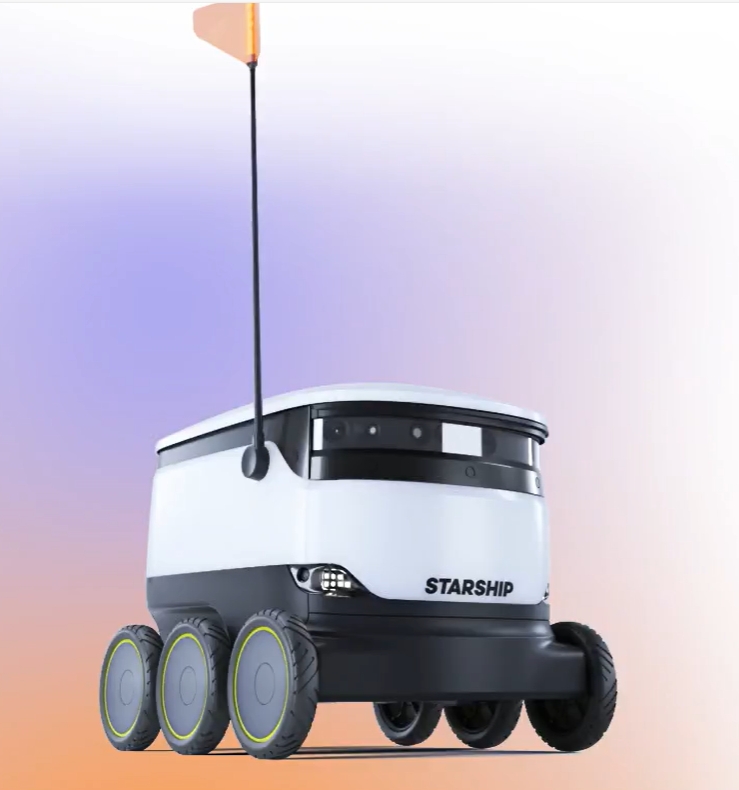 The Starship robot is a small autonomous delivery robot designed to make last-mile deliveries. They are able to navigate safely in urban environments, avoiding pedestrians and obstacles, in order to complete deliveries efficiently. Starship's robots are typically used to deliver food and other small packages