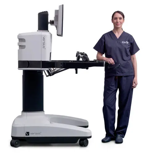 The Versius surgical robot is an advanced robotic surgical system developed by CMR Surgical to improve surgical dexterity and precision. Featuring a modular design that allows it to adapt to a variety of surgical environments and needs, as well as being easy to operate in-house, the Versius robot provides surgeons with a larger field of view and finer control of their operations, resulting in an improved patient recovery and surgical experience